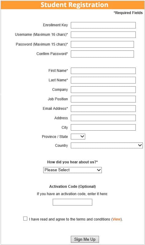 Complete the registration form to create a Student Training Account. You’ll automatically be logged into your account after clicking “sign me up” where you can purchase your course(s) and start your training immediately.